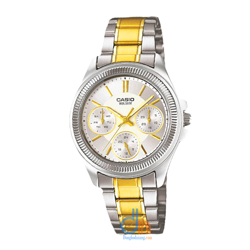 Vật liệu vỏ / vành bezel: Mạ ion Chốt gập 3 chỉ với một lần bấm Dây đeo bằng thép không gỉ Mặt kính khoáng Khả năng chống nước ở độ sâu 50 mét Giờ hiện hành thông thườngĐồng hồ kim: 3 kim (giờ, phút, giây), 3 mặt số (24 giờ, ngày, thứ) Độ chính xác: ±20 giây một tháng Tuổi thọ pin xấp xỉ: 3 năm với pin SR920SW
